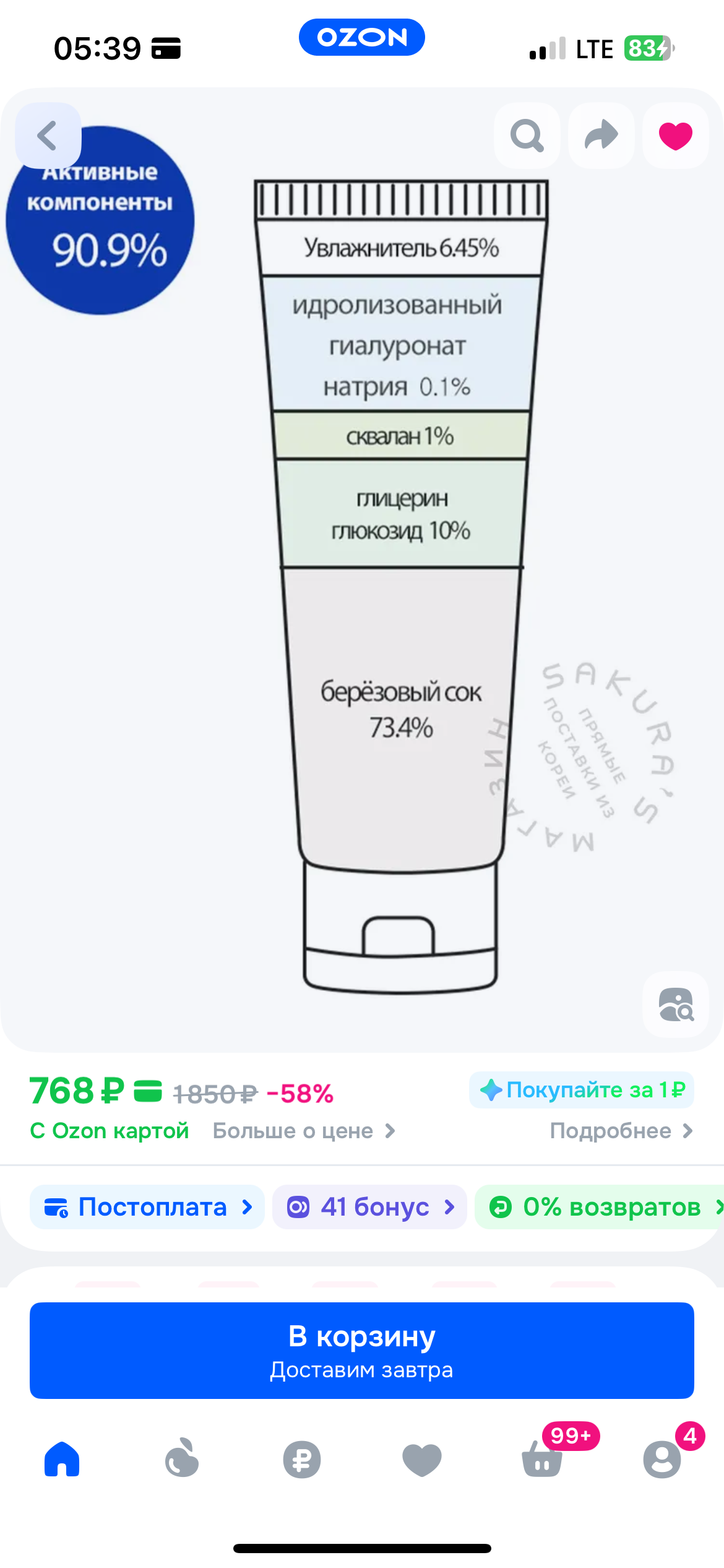 - Крем за 768 рублей содержит подменённые компоненты, которые не работают заявленным образом